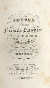 En 24 langues.- Preces sancti Nersetis Clajensis Armeniorum Patriarchae viginti quatuor linguis editae. Venetiis [à Venise], In Insula S. Lazari, 1837, in-12, portrait de l'auteur gravé par Viviani d'après un dessin de Busato, [6]-434 p., pleine...