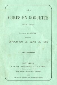 pamphlet anticlérical anonyme. Illustré de 6 dessins en noir de Gustave Courbet dont un frontispice. "Gustave Courbet peignit pour le Salon de 1863 un tableau destiné à soulever les plus violentes tempêtes. Dans cette oeuvre, intitulée "Le Retour de la Conférence", il représenta des curés de campagne qui s'en reviennent joyeux et titubants d'un banquet confraternel où ils ont noyé au fond de leur verre les ardeurs de la controverse théologique. Le jury refusa ce tableau pour cause d'outrage à la morale religieuse" (Larousse). Courbet le plaça cinq ans plus tard dans la série de 6 planches qui illustre Les curés en goguette. Rare.