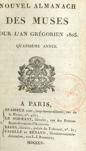 De la bibliothèque de Plon-Plon.- Nouvel almanach des muses pour l'an grégorien 1805. Quatrième année. Paris, Brasseur..., 1805, in-32, 240 p., plein veau brun de l'époque, dos lisse orné, plats encadrés d'une petite roulette dorée,...