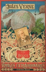 VERNE (Jules). L'Ile à hélice. 80 illustrations par L. Benett dont 12 grandes gravures en chromotypographies, 1 carte en couleurs et 2 cartes en noir. P., J. Hetzel et Cie, s.d., 4°, cartonnage polychrome édit., dos au phare, plat avant au...