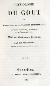 [BRILLAT-SAVARIN]. Physiologie du goût ou Méditations de gastronomie transcendante ; ouvrage théorique, historique et à l'ordre du jour, dédié aux gastronomes parisiens, par un professeur. Bruxelles, J.P. Meline, 1835, 2 vol. in-32, 328 et...