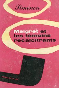 SIMENON (Georges). Maigret et les témoins récalcitrants. P., Presses de la Cité, 1959, in-12, br., couv. illustrée sur double page (lég. frottée). Édit. orig. 1/100 ex. num. de luxe, seul grand papier (Menguy, 200).