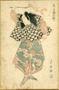 TOYOKUNI (1769-1825). L'Acteur Nakamura III brandissant une branche de prunier. Vers 1820. Format oban vertical. Passe-partout et cadre en bois peint rouge et or (37 x 52).