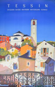 BUZZI (Daniele). "Tessin" (1943). Lithographie en couleurs. Aarau, Trüb, 1943, dim. : 102 x 64 cm (bord supér. lég. bruni avec 1 pet. déchirure).