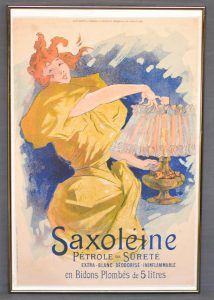 CHERET (Jules). "Saxoleine" (1896). Lithographie en couleurs, signée dans la planche, marouflée sur toile et montée sous cadre. Supplément au numéro du Courrier français du 26 janvier 1896. P., Impr. Chaix, 1896, dim. cadre : 60 x 40 cm ;...