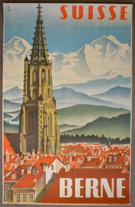 REBER (Bernhard). "Berne" (1934). Lithographie en couleurs. Berne, Impr. Steiger, 1934, dim. : 100 x 64 cm (bord gauche froissé, très lég. piqûres éparses).