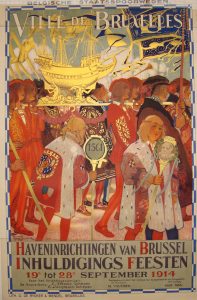 TOUSSAINT (Fernand). Affiche (1914). Lithographie en couleurs réalisée pour l'inauguration des installations portuaires de Bruxelles du 19 au 28 septembre 1914. Festivité annulée en raison du début de la guerre. Impr. De Rycker et Mendel à...
