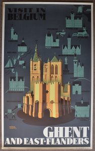 VERBAERE (Herman). "Visit in Belgium - Ghent and East-Flanders". Lithographie en couleurs. Brux., De Rycker, s.d., dim. : 100 x 61,5 cm.