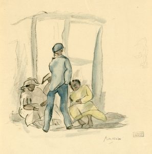 PASCIN (Jules). Sans titre. Encre et aquarelle sur papier, signée du cachet d'atelier, montée sous passe-partout crème et cadre en bois. Dim. cadre : 46 x 43 cm ; sujet : 17 x 17 cm.