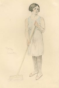 RASSENFOSSE (Armand). "La Nouvelle Bonne" (1927). Mine de plomb et crayons de couleurs sur papier, titrée, datée et signée au bord gauche. Dim. support et sujet : 37 x 28 cm.