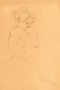 RASSENFOSSE (Armand). Sans titre [Jeune femme de profil]. Croquis au crayon gras sur papier teinté, daté (1919) et signé au coin infér. droit. Dim. support et sujet : 29 x 20,5 cm.