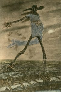 ROPS (Félicien). "Satan semant l'ivraie". Héliogravure en couleurs montée sous passe-partout et cadre doré en bois. Dim. cadre : 44,5 x 37,5 cm ; sujet : 18,7 x 12,9 cm (Exsteens, 1103).