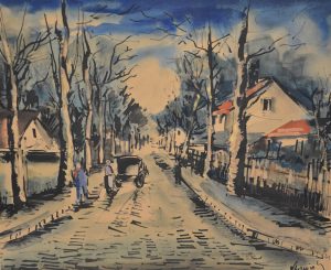 VLAMINCK (Maurice de). "Après l'orage (près de Pontoise)". Pochoir tiré sur vélin d'Arches, just.278/400, signé au crayon et monté sous cadre en bois. Dim. cadre : 62 x 82 cm ; sujet : 44 x 52,5 cm, papier insolé (Walterskirchen, Annexe 44).