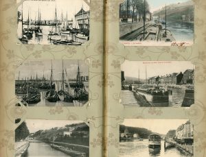 Cartes postales.- Bateaux, paquebots... (+/- 138 c.p.).- Châteaux principalement belges (+/- 171 c.p.). 1 album de cartes postales anciennes.