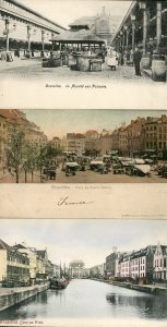 Cartes postales.- Belgique. Bruxelles. Album de 44 cartes anciennes, dont des cartes postales publicitaires (cafés, brasseries), laitières... + 1 pochette de 10 cartes du Secours d'Hiver de 1941.