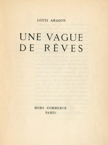 Ecrit fondateur du surréalisme.- ARAGON (Louis). Une vague de rêves. Paris, Hors Commerce, (1924), plaquette 4°, 38 p., br., non rogné. Edit. orig., tirage à part à quelques exemplaires de la revue "Commerce". Cet essai constitue l'un des...