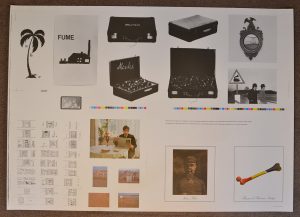 BROODTHAERS (Marcel). Affiche (1974). Planche en noir et en couleurs tirée sur papier couché réunissant les différentes illustrations proposées dans le catalogue d'exposition du Palais des Beaux-Arts de Bruxelles en 1974. Dim. : 61,5 x 86 cm....