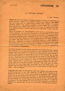 "Correspondance". Orange 21. La Guérison sévère. Dir. : C. Goemans, M. Lecomte, P. Nougé. 4 feuillets 32,5 x 23 cm sur papier orange. N° 21 sur les 22 que comporte la collection complète de "Correspondance". Tirés chacun à une centaine...
