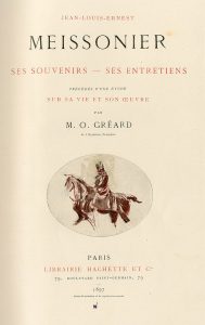 MEISSONIER.- Meissonier. Ses souvenirs. Ses entretiens, précédés d'une étude sur sa vie et son oeuvre par O. Gréard. P., Hachette, 1897, 4°, 466 p., 20 eaux-fortes originales d'après ses oeuvres, 18 pl. en coul. et 258 ill. en noir,...
