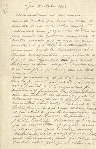 et auteur dramatique français ?], daté de Lyon le 29 oct. 1902, 3 p. 8° (pliure). Après avoir parlé de ses ennuis et mentionné : « la succession des choses désagréables que je subis de la part des Apaches », Chenay parle du monument funéraire de Charles Baudelaire dont l'inauguration a eu lieu la veille au cimetière Montparnasse : « Vous m'annoncez et je l'ai vu dans tous les journaux que j'ai là, que vous aviez présidé à l'inauguration du monument funéraire de Baudelaire, dû au talent de Monsieur José de Charmoy [(1879-1914 ou 1919), sculpteur français] [...]. J'ai lu l'article d'Uzanne qui est un fin et érudit lettré et qui est avare d'éloges [...] qui fait le votre, moins chaleureusement que je l'aurais voulu mais sincèrement, ainsi que celui de l'artiste votre protégé et votre ami. » [C'est Jean Aicard, semble-t-il, qui préside à l'inauguration. Ce monument suscita de nombreuses controverses, cf. A. Guyaux édit., « La Querelle de la statue de Baudelaire »... P., 2007]. Chenay parle ensuite longuement du poète : « Comme vous savez j'ai beaucoup connu Baudelaire, qui venait au café de Bade du temps des Busquet des Faniès des Hetzel des Aurelien School des Mallefille des Monselet des Murger et de tant de transfuges du Vieux Divan de l'opéra... Je me rappelle certaine scène du Casino de la rue Cadet et certaines soirées passées avec d'autres amis de tout sexe, mais malgré ses détracteurs de cette Époque ce nombreux cénacle l'admirait ainsi que moi »... Etc. Beau document.