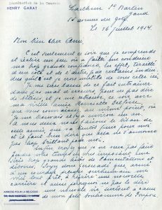 « Ça, c'est Paris ». Il incarne un jeune premier idéal dans « Soir de réveillon » (1933) et « Il est charmant », deux opérettes d'Albert Willemetz. En 1933, il tourne à Hollywood dans le film « Adorable », avec Janet Gaynor. Il interprète également un grand succès de la chanson, avec « Avoir un bon copain ». En 1938, dans « L'Accroche-Coeur » de Sacha Guitry, il joue aux côtés de Jacqueline Delubac. Mais son train de vie extravagant (auto, yacht, avion, château), sa consommation de cocaïne, ses mariages et ses divorces achève de le ruiner. En 1944, il part en Suisse pour suivre une longue cure de désintoxication. On le voit ensuite en Angleterre (où il rencontre un certain succès), aux États-Unis, ainsi que sur la Côte d'Azur. Au début de 1953, il donne un ultime tour de chant au cabaret la Villa d'Este. Lettre autographe signée à Willy Maury (1892-1955), acteur et chanteur belge, datée de Laethem-St-Martin (Gand) le 16 juill. 1954, 4 p. 4° sur papier à en-tête à son nom (pliures), enveloppe jointe (déchirée). Longue et émouvante lettre où Garat tente de refaire carrière. « Je me suis laissé [...] entraîner dans pas mal d'erreurs, pour ne pas dire de bêtises, et je me retrouve ce soir, avec ma vieille amie Henriette Delfosse que vous connaissez, au même point, où je me trouvais il y a environ un an. À nous deux nous faisons le bilan de cette année qui va bientôt finir pour moi et il faut bien dire que cela s'annonce pas trop brillant pour moi. / [...] J'arrive maintenant au fait qui nous intéresse. Ma gentille amie Henriette Delfosse m'a fait part de la conversation que vous avez eue à mon sujet, à savoir : que vous désiriez que je comparaisse devant vous pour que vous m'entendiez vous chanter la chanson Paris. Paname [la chanson interprêtée par Joséphine Baker ?]. J'ai trouvé cette idée là charmante, cela m'eût rappelé un peu le conservatoire, je suis raide comme un passe-lacet, et si vous me voyez par hasard un jour, à l'horizon, ce serait une preuve formelle et catégorique, que j'aurais de l'argent dans ma poche. [...] Mais à titre d'indication, sachez (ceci à toutes fins utiles) que j'ai travaillé, très sérieusement [c'est l'auteur qui souligne], non pas deux mais trois chansons. Je veux dire par là Paris-Paname - Comme ça - Ma Louise [...]. Je suis tout prêt à les enregistrer à condition d'avoir évidemment une compagnie de disques qui veut bien de moi. » Etc. Il termine en parlant de Mme Willy Maury qui est tombée accidentellement. On joint une carte postale (bouquet de fleurs) autographe du même à Mme Willy Maury, datée de Gand le 10 juill. 1954, qq. jours avant la lettre précédente, dans laquelle il présente ses « bons voeux de prompte guérison » pour son « léger accident » dont il est question dans la lettre./ Ens. 2 pièces.