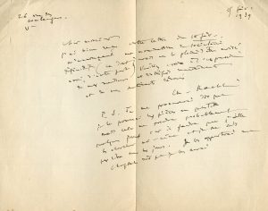 « Traité » reste, aujourd'hui encore, un ouvrage de référence en France et à l'étranger. Lettre autographe signée à un « Cher monsieur » [Jean-Bernard Passérieu, dit Jean-Bernard (1858-1936), avocat, homme de lettres, homme politique, journaliste et conférencier français], datée du 15 févr. 1939, 1 p. 4° (pliure). « J'ai bien reçu votre lettre du 10 fév. [c'est l'auteur qui souligne] m'annonçant ma nomination de sociétaire définitif (ce dont j'avais eu le plaisir d'être avisé aussi, d'autre part). Veuillez croire à l'expression de mes meilleurs remercîments » etc. Suit un PS où Koechlin annonce qu'il va se procurer « les pièces en question » mais que cela « prendra probablement quelques jours »… Il s'agit sans doute de sa nomination de sociétaire définitif de la Sacem (Société des Auteurs, Compositeurs et Éditeurs de Musique).