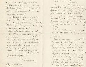 Paris le 11 oct. 1909, 3 p. in-12. Longue et belle lettre à son correspondant gantois - le jeune Charles Leirens (1888-1963), photographe et musicien ? -, où il est question d'un séjour en Bretagne et surtout d'une participation au salon de Gand : « Tout ce que vous m'avez écrit sur le Salon de Gand ne m'a en aucune façon étonné. Je sais que les artistes belges jalousent les artistes français. Nous en avons tous eu ici des preuves certaines. Aussi jamais il ne me serait venu à l'esprit d’exposer à Gand et si ce n'avait été votre aimable insistance je me serais abstenu, sachant ce qui m'aurait attendu. / J'ai eu le maximum de succès que je pouvais obtenir dans votre ville, les critiques ne m'ont pas trop mal traité. Quant à y vendre quelque chose je ne l'ai jamais espéré. / Voulez-vous une preuve de ce mauvais esprit ? - Procurez-vous la note imprimée que l'on envoie après l'exposition aux artistes y ayant figuré et dans laquelle on donne la liste des acquisitions.- Je vous parie qu'il n'y aura pas, sur cette liste, cinq artistes français. / Tout s'est donc passé comme cela devait se passer ! » L'artiste reparle ensuite de la Bretagne, de sa Société de sa gravure originale en couleurs et demande quand son interlocuteur lui rendra visite. Il présente enfin ses hommages à Madame Leirens « quoique que [sic] nous n'ayons pas l'honneur de la connaître ».