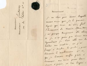 sans doute Joseph-Jacques Defermon des Chapelières (1752-1831), député, datée de « mercredi 1er mai » (avant le 20 juin 1831, date de décès de Defermon, si cette lettre lui est bien adressée), 5 lignes sur 1 p. 8°, enveloppe avec cachet de cire rouge conservée : « Je voudrais bien vous voir demain matin vers onze heures, un moment. » 2. Lettre autographe signée à « Degouve de Nuncques / rue Pelletier 3 / Paris », datée de Paris le 23 févr. 1839, 6 lignes sur 1 p. 8° : « Je vous remercie de l'avis que vous me donnez. J'en profite et j'envoie à Mr Billet à Arras les exemplaires demandés. » 3. Lettre autographe signée à « Monsieur Fontaney rue du Helder n° 11 » (peut-être Antoine-Étienne Fontaney (1803-1837) écrivain, journaliste et poète romantique français), datée de « mardi 29 », 1 p. et 4 lignes in-12, cachet de cire (pliures, manque de papier à un coin sans perte de texte) : « Je ne suis pas aussi coupable envers vous que je le parais depuis que vous m'avez fait l'honneur de venir chez moi, j'ai presque toujours été absent, et je n'ai guère pu vous voir. » Etc. 4. Billet autographe non signé à Joseph Floret (1796-1871), opposant libéral à la Restauration, sous-préfet de Carpentras en juillet 1830, daté du 7 juill. 1831 (cachet de la poste, dans sa lettre, Thiers termine par la mention « Jeudi matin », il s'agit bien du 7 juill.), 1 p. in-12 : « Je ne passerai pas par Carpentras, mais je souhaite fort te voir. Sois à Tarascon Samedi matin [...] nous passerons quelques heures ensemble. Je suis député à une majorité des deux tiers. » 5. Lettre manuscrite avec signature autographe « À Monsieur Bonnafoux Chanoine de Notre Dame », datée de Paris le 8 février 1850, 1 p. 8° sur papier de deuil : « Je suis heureux de la demande que vous avez bien voulu m'adresser d'un exemplaire de mon rapport sur l'assistance [« Rapport général présenté par M. Thiers au nom de la Commission de l'assistance et de la prévoyance publiques : dans la séance du 26 janvier 1850 ». Paris, Paulin, Lheureux et Cie], et je profite avec empressement de l'occasion que vous me fournissez, non seulement de faire une chose agréable à l'ancien proviseur du collège où j'ai commencé mes études, mais de vous présenter mes remerciements pour tout ce que vous dites de flatteur dans votre lettre. De pareilles approbations sont la plus belle, la seule récompense. » Etc. 6. Lettre autographe signée à un « Monsieur », datée de Paris le 3 sept. 1864, 1 p. petit in-12 sur papier vert d'eau : « En traversant Paris j'ai trouvé la lettre dans laquelle vous m'annoncez que la Commission topographique de [la] Gaule a bien voulu m'accorder un exemplaire de la carte muette exécutée sous sa direction. » Etc. 7. Lettre autographe signée à un « Monsieur », datée de « Franconville par Luzarches Seine et Oise » le 21 sept. 1868, 1 p. 2/3 petit in-12 sur papier vert d'eau. Belle et curieuse lettre : « Monsieur / Avant de quitter St Germain j'ai fait pour vous tout ce que je pouvais. J'ai écrit au ministre de la Marine [Charles Rigault de Grenouilly (1807-1873)], qui sur ma prière a fait examiner votre affaire, et m'a envoyé son aide de camp Mr [?] qui devait vous rendre compte du résultat. [...] / Recevez mes salutations, et le conseil amical de mieux employer l'avenir que le passé. » On joint 17 caricatures de Thiers par Gill extraites de « La Lune » ou de « L'Éclipse »./ Ens. 24 pièces.