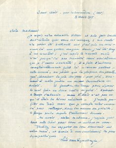 VAN RYSSELBERGHE, Théo (1862-1926), peintre belge. Lettre autographe signée à Madame Goldner Max, datée de Paris le 17 oct. 1915, 2 p. et 2 lignes gd 8°. L'artiste est en plein déménagement et a trouvé refuge chez ses amis les Maus (Octave...