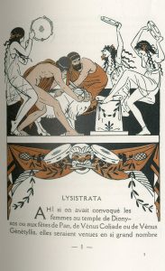 CARLEGLE.- ARISTOPHANE. Lysistrata. Ill. de dessins aquarellés de Carlègle (vignette au titre et compositions in-texte en 2 couleurs). P., Briffaut, "Le Livre du Bibliophile", 1928, 4°, demi-maroquin rouge, dos à 6 nerfs orné de fleurons dorés...