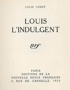 CODET (Louis). Louis lindulgent. P., NRF, 1925, 4°, br. (couv. lég. défraîchie). Edit. orig. 1/109 ex. de tête réimposés au format in-quarto et num. sur vergé Lafuma./ IDEM. La Fortune de Bécot. P., NRF, 1921, 4°, br. Edit. orig. 1/125 ex....