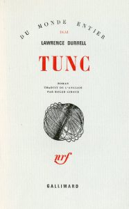 DURRELL (Lawrence). Tunc. Trad. de l'anglais par R. Giroux. P., Gallimard, "Du monde entier", 1969, 8°, br. (dos lég. décoloré, non coupé). Edit. orig. 1/56 ex. num. sur vélin pur fil.