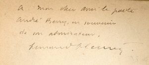1935, in-12, br. Edit. orig./ IDEM. Soeur Félicité. Récit orné de 6 images hors texte dessinées et gravées à l'eau-forte par Yves Alix. P., Au Sans Pareil, 1926, 8°, br. Edit. orig. 1/1000 ex. num. sur vélin Montgolfier d'Annonay. Envoi a.s. "à Monsieur Robert Guiette, à l'ami et traducteur de Beatrix en cordial souvenir"./ BERRY (André). Les maladies du goût au XXe siècle. P., Hippocrate, 1937, 8°, br. Edit. orig. tirée à petit nombre./ IDEM. La Bague de Jessica. P., s.e., 1936, 8°, br. Edit. orig. Rare tiré-à-part extrait du 1er recueil de l'Association Florence Blumenthal./ GOSSEZ (A.-M.). André Berry et le trésor des lais. Avec un portrait au pinceau d'Alex Trétiakoff. Bordeaux, Les Éditions d'Aquitaine, 1936, 8°, br., non coupé. Edit. orig. 1/200 ex. sur alfa bouffant./ Ens. 6 vol.