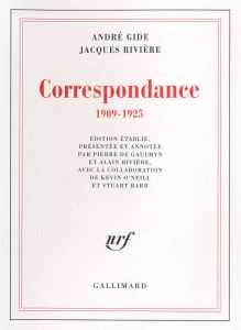 GIDE (André) et RIVIERE (Jacques). Correspondance, 1909-1925. Edition établie, présentée et annotée par P. de Gaulmyn et A. Rivière. P., Gallimard, 1998, fort 8°, br., non coupé. Edit. orig. 1/52 ex. num. sur vélin de Lana, seul grand papier.