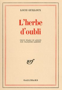 GUILLOUX (Louis). L'Herbe d'oubli. Texte établi et annoté par Fr. Lambert. P., Gallimard, 1984, 8°, br., non coupé. Edit. orig. tirée à 34 ex. num. 1/17 de tête sur vergé de Hollande.