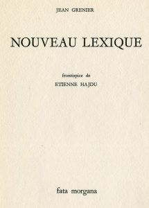 HAJDU.- GRENIER (Jean). Nouveau lexique. Frontispice de Etienne Hajdu (estampille originale, justifiée, signée et datée au crayon). Montpellier, Fata Morgana, 1969, 8°, en f., couv. impr. Edit. orig. tirée à 350 ex. num. 1/50 ex. de tête sur...