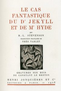 LE BRETON.- STEVENSON (R.-L.). Le Cas fantastique du Dr Jekyll et de Mr Hyde. Gravures sur bois de Constant Le Breton. Trad. de l'anglais par Théo Varlet. P., Jonquières, 1926, 4°, demi-chagrin rouge, dos à 2 nerfs, auteur, titre, roulettes et...