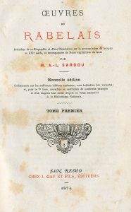 RABELAIS (François). Oeuvres de Rabelais précédées de sa biographie et d'une dissertation sur la prononciation au XVIe siècle, et accompagnées de notes explicatives du texte par M. A.-L. Sardou. Nouvelle édition collationnée sur les...