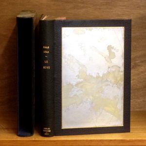 SCHWABE / METIVET.- ZOLA (Emile). Le Rêve. Ill. de Carlos Schwabe et Lucien Métivet (in- et h. t. en noir). P., Flammarion, s.d. (1892), 4°, plein maroquin vert foncé, dos lisse, titre doré, plats décorés d'un grand rectangle de papier...