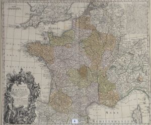 S.M.I. à Augsbourg. Augsbourg, Matthaus Seutter, s.d. (ca 1735). Carte gravée, provinces aquarellées (env. 475 x 560 mm) sous cadre mouluré moderne.
