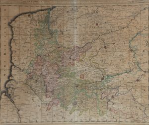 eosque circumjacentes provincias : accurant. Gedo et Ledo Valk S.l. [Amsterdam, ca 1710]. Carte gravée avec contours et provinces aquarelées, (env. 490 x 595 mm), sous cadre bois moderne.