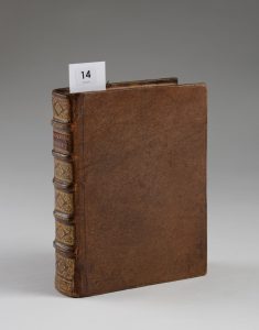 Diogène Laerce n^pl ^l^v (...) De vitis, decretis, & responsis celebrium philosophorum libri decem, nunc primum excusi. Bâle, Froben, 1533. 1 vol. in-4°, veau brun jaspé, dos à nerfs orné de caissons dorés, pièce de titre en maroquin rouge,...
