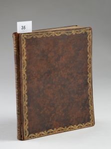 s.n., 1 777. 1 vol. in-4°, basane marbrée, dos lisse orné de fleurons dorés, pièce de titre rouge, roulette, filet et dents-de-rat dorés en encadrement sur les plats, filet doré sur les coupes, tranches dorées. Reliure du temps, coiffes absentes, fentes aux mors, coins émoussés. Portrait h.-t. gravé en frontispice, Cxxiv pp. Première édition de la traduction française, par Gueneau de Montbéliard. Très rare. Cette édition ne fut tirée qu'à 100 exemplaires selon Quérard. Quérard Iii, 408.