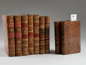 vol. in-8°, basane racinée blonde de l'époque) - Gibelin, Abrégé des transactions philosophiques de la Société royale de Londres, Botanique, 1 790 (2 vol. in-8°, demi basane blonde de l'époque) - Dictionnaire portatif d'histoire naturelle, 1762 (2 vol. in-12, veau marbré, dos à nerfs ornés, reliure de l'époque). Quelques défauts aux reliures, mais bons exemplaires dans l'ensemble.