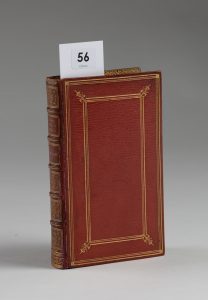 fleurons dorés aux angles de l'encadrement intérieur, double filet doré sur les coupes, dentelle dorée intérieure. Reliure sur témoins signée de Thouvenin, mors restaurés. Exemplaire non rogné, à toutes marges. Première édition elzévirienne. « Quoique le titre soit en latin ce recueil contient ses poésies grecques, françaises et italiennes. La 1 12ème épigramme est en l'honneur de Daniel Elzevier » (Willems). Provenance : vente Cigongne (1861 , n°465) avec son ex-libris doré sur pièce ovale de mar. rouge. Exemplaire cité par Willems. Willems, 1311