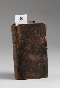 Ménestrier (François) Abbregé methodique des principes héraldiques, ou du véritable art du blason. Lyon, Thomas Amaulry, 1677. 1 vol. in-12, veau brun, dos à nerfs orné de caissons dorés. Reliure de l'époque usagée, coiffes élimées, mors...