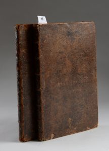 de l'époque usées, coiffes absentes, éclats au dos, coins émoussés. Portrait et 40 planches sur 41 hors-texte repliées. (2) ff., Vi-176 pp.; (3) ff., 210 pp. Petite galerie de vers dans la marge inf. au tome Ii. I (Lil manque la planche 33 au début du tome Ii. Quelques rousseurs. Belle édition illustrée. Ex-libris héraldique au contreplat et ex-dono à l'occasion du mariage de Philiberte de Bonnefoy avec Jean de Puységur. On joint un document manuscrit signé du comte de Puységur, ministre et secrétaire d'Etat (Louis-Pierre, 1727-1807) intitulé Requête et pièces jointes pour le marquis de Wavrin de Villiers au Tertre. Brunet Iv, 989.