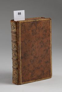 doré sur les plats, filet doré sur les coupes, roulette dorée intérieure, tranches rouges. Reliure de l'époque, coiffes élimées, coins émoussés. Bon exemplaire. (3) ff., xx-528 pp., (29) ff., (1 ) f. blanc. Quelques rousseurs. "Catalogue recherché. Les livres de cette belle bibliothèque se reconnoissent aux armoiries du propriétaire, placées sur les deux côtés de la couverture. Leur parfaite conservation et la beauté toute particulière de leur reliure, soit en maroquin, soit en veau fauve, les font ordinairement payer à de très hauts prix, toutes les fois qu'il s'en rencontre dans les ventes publiques.” (Peignot). 4743 lots décrits. Prix d'adjudication notés à l'encre brune en marge.