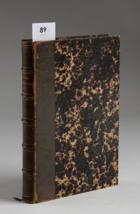 nerfs orné de filets et de roulettes dorés, pièce de titre en maroquin rouge. Reliure de l'époque défraîchie, frottements aux mors. xiij pp., (3) pp., 400 pp., Xii pp., 55 pp. Bon exemplaire de ce catalogue de vente de l'une des plus prestigieuses bibliothèques privées françaises du xixe s. La partie concernant la Révolution yest particulièrement développée. 2846 lots décrits, prix d'adjudication notés à l'encre en marge.