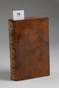 d'une roulette à froid sur les plats, filet doré sur les coupes, roulette dorée intérieure, tranches rouges. Reliure de l'époque, coiffe inf. absente, coins émoussés, plats tachés. Bon exemplaire. (4) ff., 424 pp., *76 pp. (saut de pagination entre pp. 248 et 257 sans manque). Rousseurs. Catalogue rédigé par Gabriel Martin, comprenant 5999 lots. Cette bibliothèque composée de plus de 6.000 lots, est principalement composée de livres sur l'histoire de France et d'Europe et la généalogie. Le catalogue fut édité par Gabriel Martin en utilisant les fichiers de M. Lancelot. On trouve, relié à la suite : Catalogue des livres de la bibliothèque de M. Godefroy (...) avocat au Parlement (...) dont la vente se fera en détail, Lundi 28 Février 1746 & jours suivans... Paris, Jacques Barrois, 1746. vj-1pp. 3886 ouvrages décrits et 370 manuscrits.